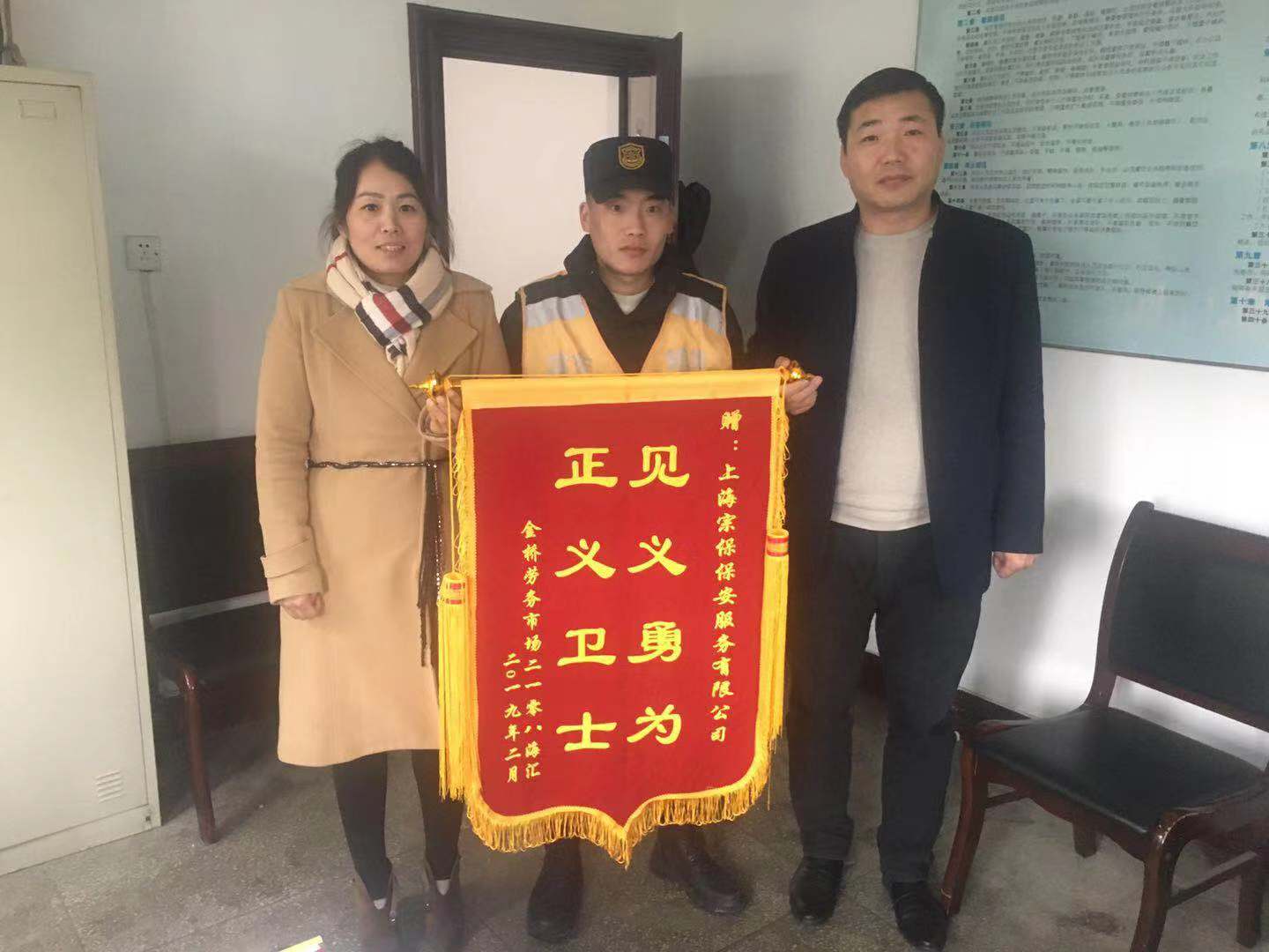 2019年2月22日,金橋勞務(wù)市場(chǎng)海匯勞務(wù)公司將一面錦旗送到宗保駐金橋市容項目負責人谷經(jīng)理手上,感謝宗保隊員見(jiàn)義勇為,解救其公司女員工的行為,避免了一次惡性事件發(fā)生。