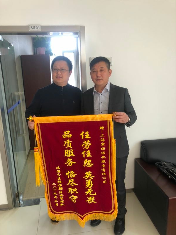 2019年3月13日,浦東公安分局臨港分區指揮中心送錦旗到宗保保安公司,對公司臨港區域特保工作表示認可和肯定。