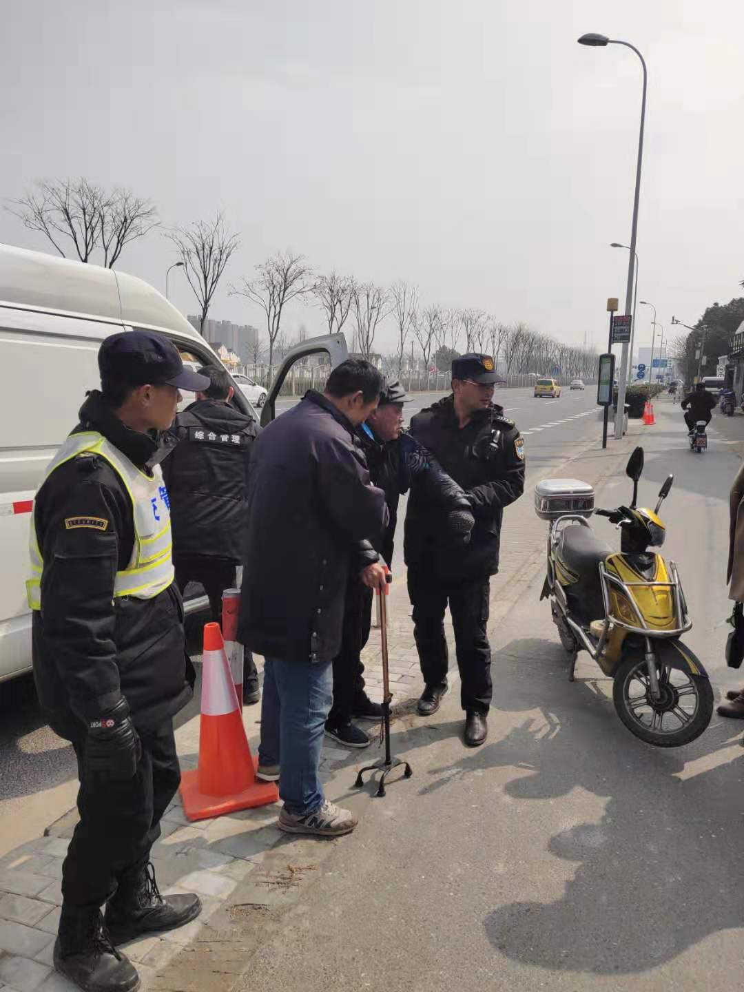 3月4日12:20左右,宗保駐三林市容隊員鄭全、李思昌巡邏至板泉路時(shí),發(fā)現一名70多歲的老人躺在地上。小李立馬上前將老大爺扶起,并詢(xún)問(wèn)老人情況。老大爺說(shuō)自己是腦梗病發(fā)作,腿不能動(dòng)而跌倒。小鄭和小李了解情況后,詢(xún)問(wèn)老人是否需要送醫院,但老人拒絕去醫院。小李馬上幫忙聯(lián)系其家人。不一會(huì )兒,家屬騎著(zhù)電瓶車(chē)來(lái)了。隊員考慮老人不能坐電瓶車(chē),就安排車(chē)輛把老人送到家里。