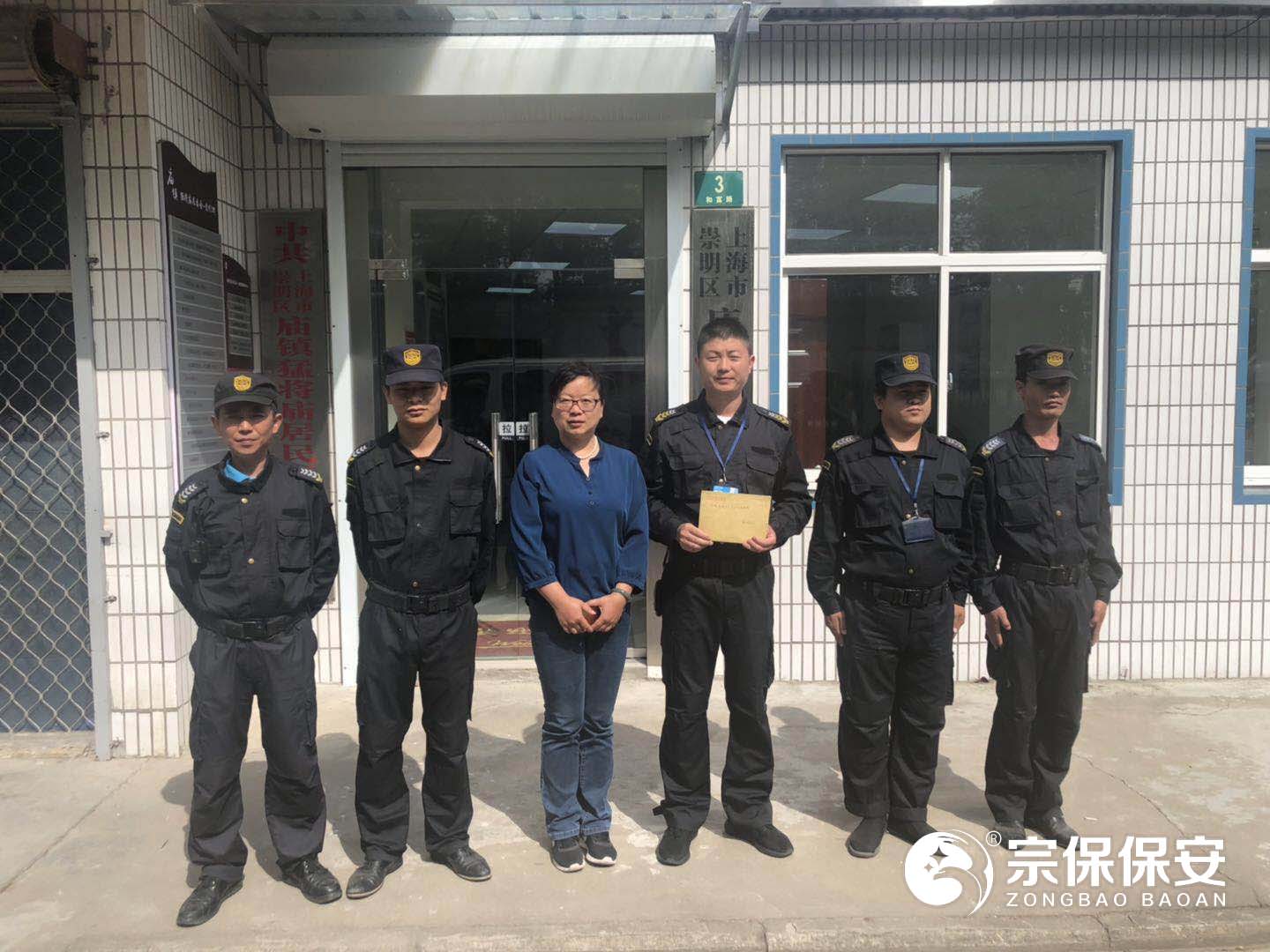 2019年5月20日,崇明廟鎮合作居委會(huì )陳書(shū)記將一封表?yè)P信送到宗保保安駐崇明廟鎮項目,以表示對宗保公司工作的認可及感謝。