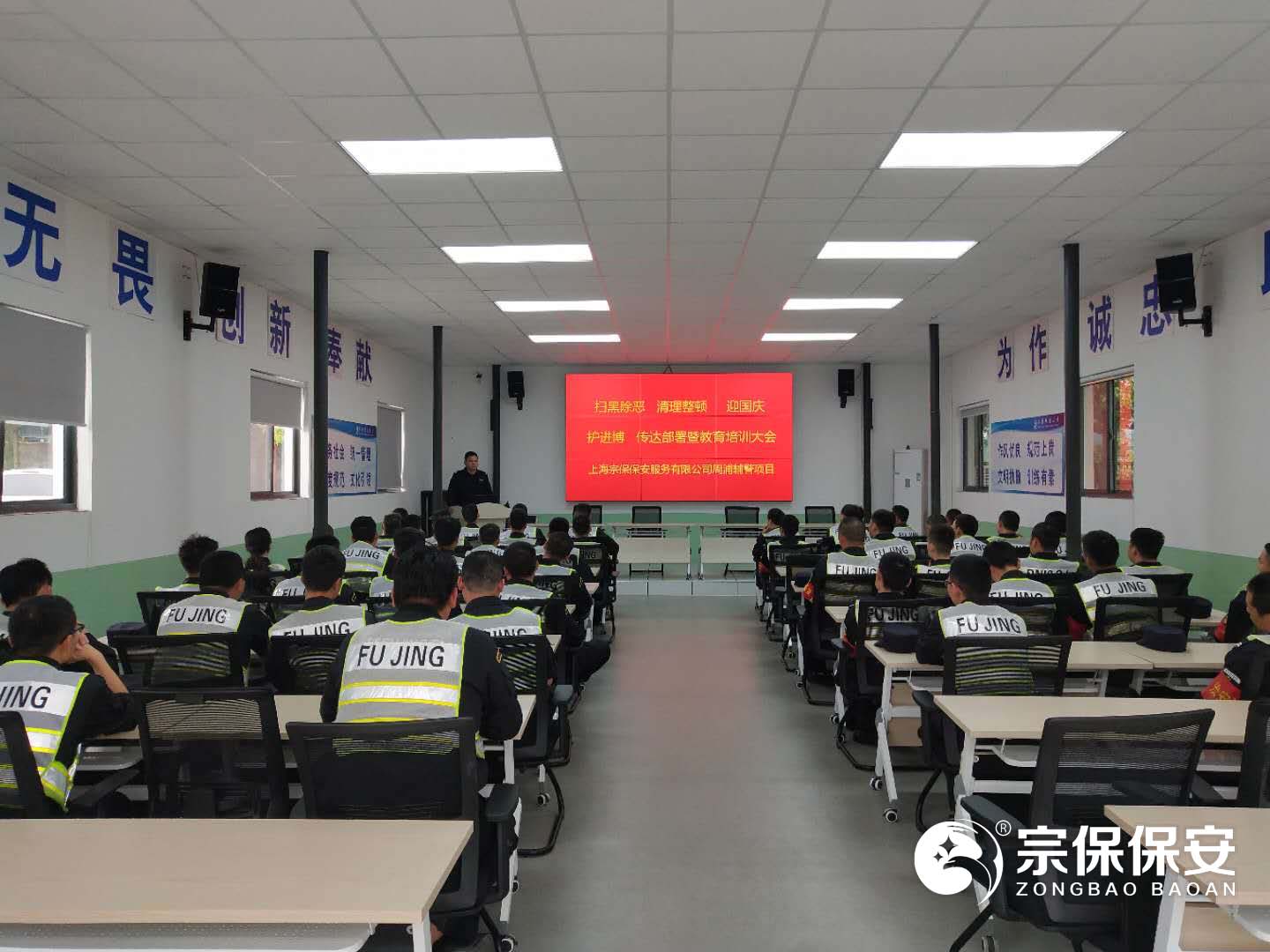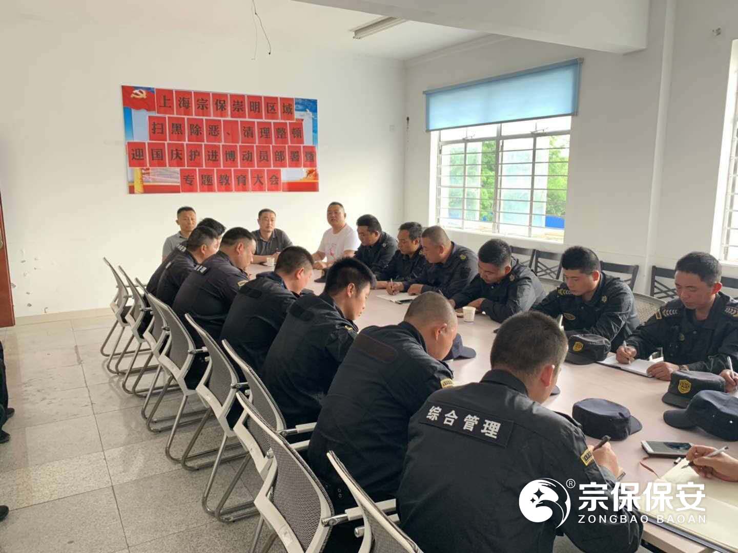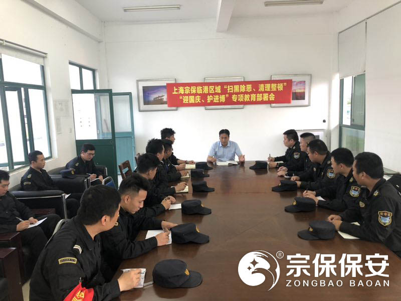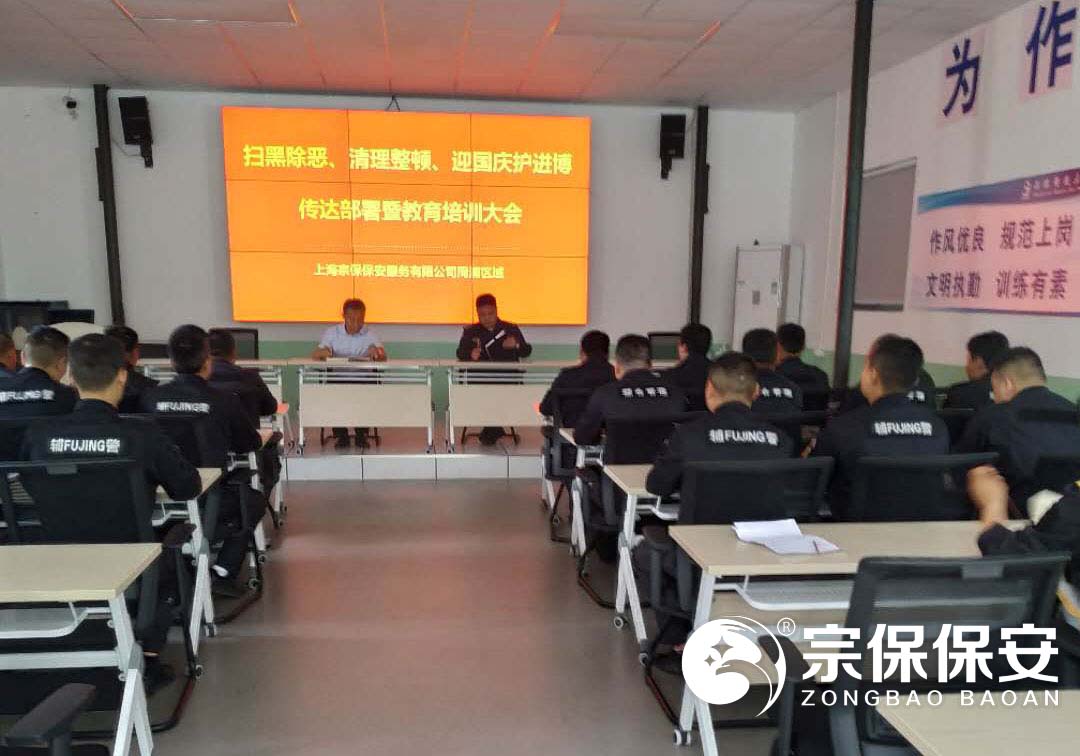 為了全面深入貫徹落實(shí)市治安總隊掃黑除惡專(zhuān)項斗爭工作部署,2019年5月18日上午,上海宗保保安服務(wù)有限公司在申江南路基地召開(kāi)掃黑除惡、清理整治、迎國慶護進(jìn)博動(dòng)員部署暨專(zhuān)題教育大會(huì ),公司項目負責人以上人員全員參加會(huì )議。