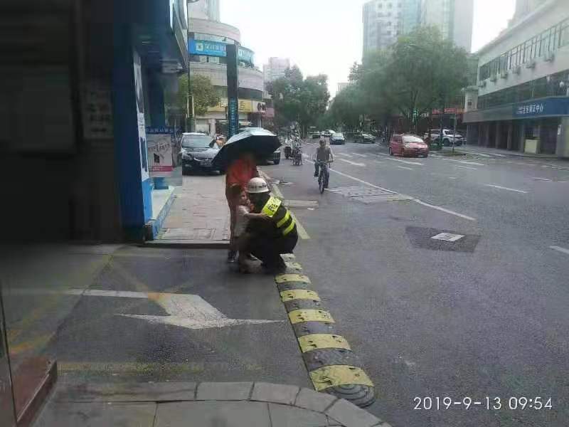 9月13日,浙江民泰駐臨平市容項目隊員張艮振和岳壯熱心幫助走失兒童找到父親,受到群眾好評。