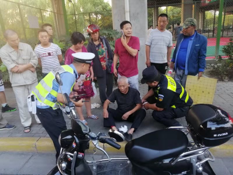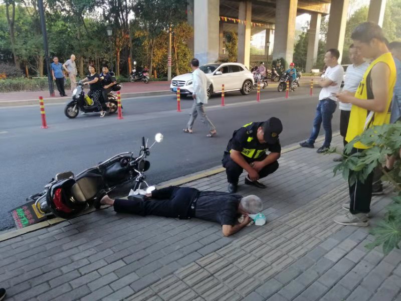當天下午16:50左右,小張像往常一樣緊張有序地執勤,當巡查到紅豐立交橋崗位時(shí)看到前面一群人圍觀(guān),第一反應可能出事了。小張急忙走上前,只見(jiàn)一位大爺騎電車(chē)摔倒在地。