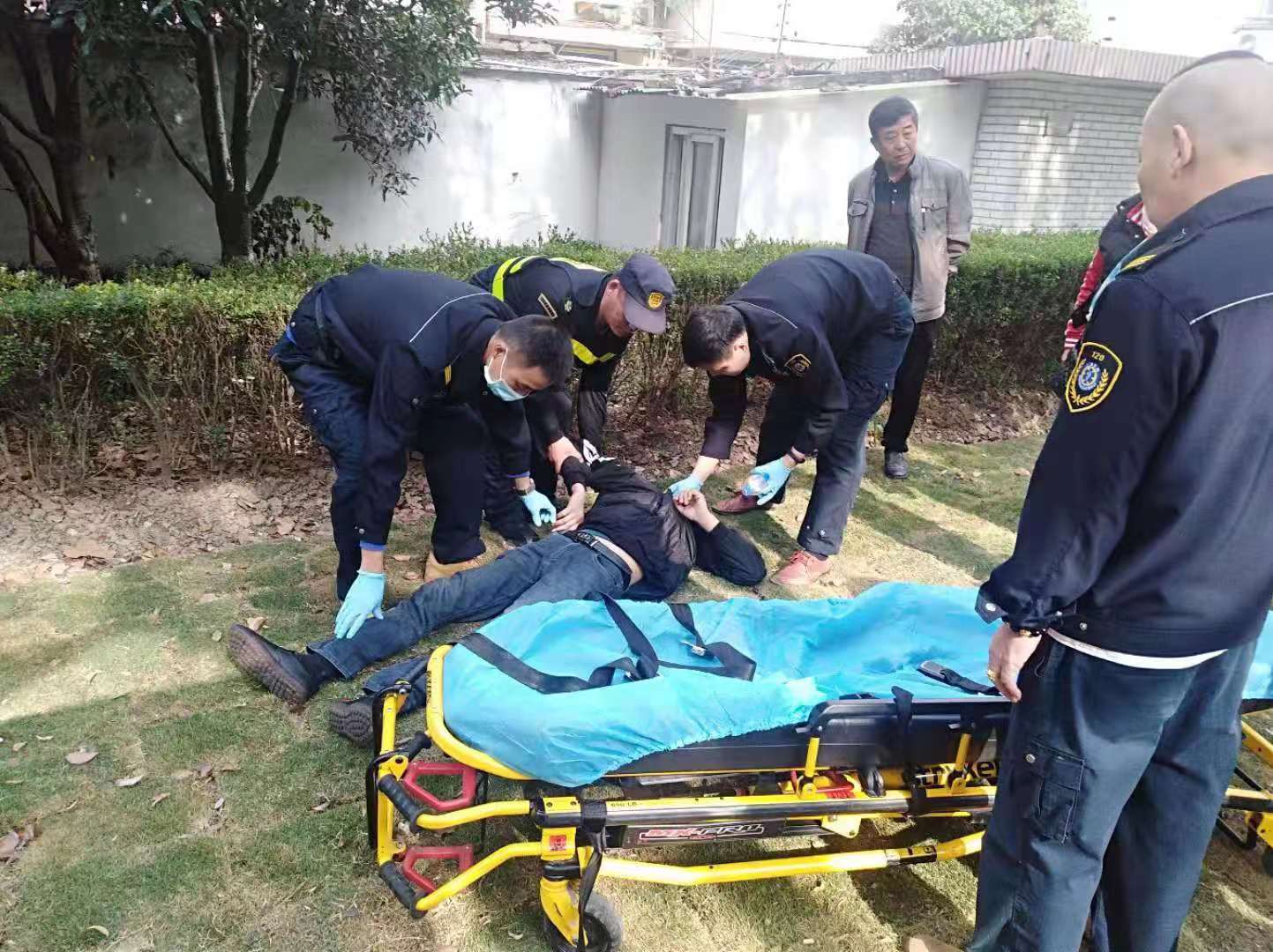 很快,醫護人員和民警先后到達現場(chǎng)。在簡(jiǎn)單處置后,張治付協(xié)助醫護人員把男子抬上救護車(chē),并向民警陳述現場(chǎng)情況,隨后小張回到原崗位進(jìn)行正常巡邏。