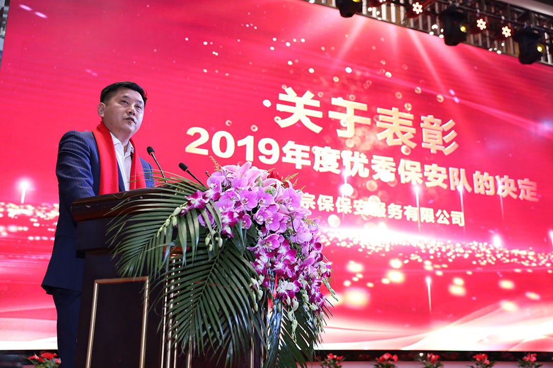 晏軍(上海宗保保安總經(jīng)理)宣讀《關(guān)于表彰2019年度優(yōu)秀保安隊的決定》