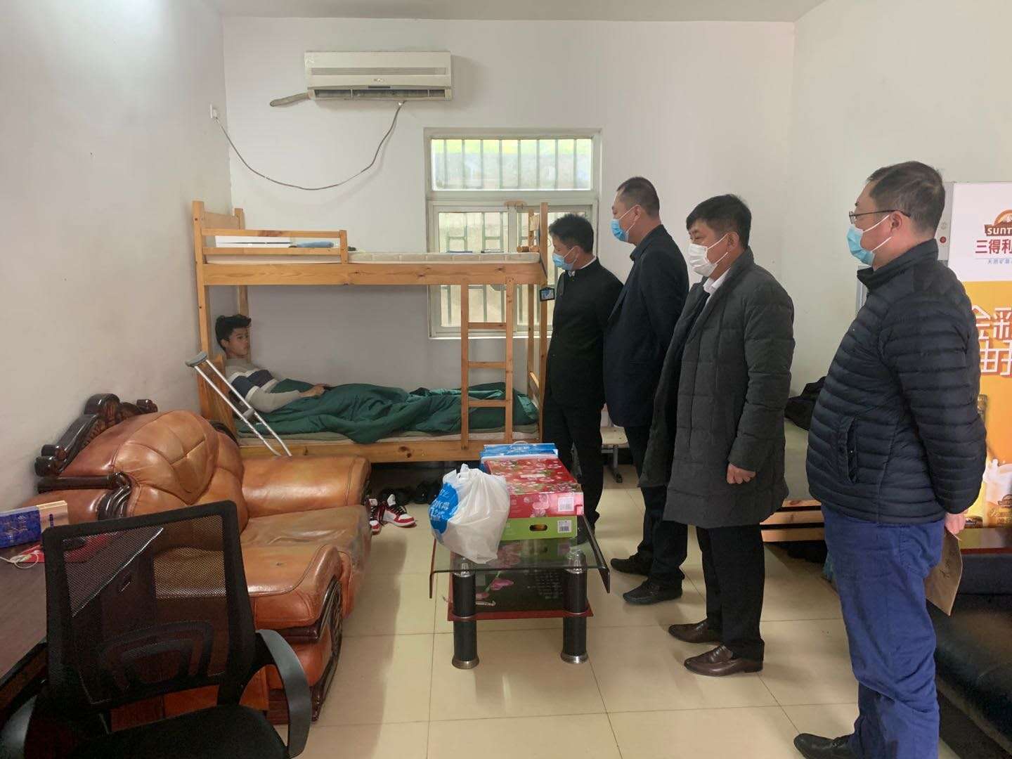 2月28日下午,公司董事長(cháng)馮中保等領(lǐng)導一行來(lái)到長(cháng)興島市容項目宿舍看望慰問(wèn)受傷隊員趙崇博,并送去慰問(wèn)品和撫慰金。