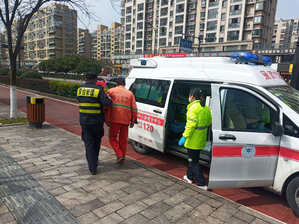3月7日11點(diǎn)34分,浙江民泰保安公司駐東湖市容蘭江菜場(chǎng)項目保安隊員李亞洲、俞建農在巡邏中發(fā)現一位保潔大爺昏倒在地上,旁邊圍觀(guān)人員無(wú)人上前。面對倒地的老人,兩位隊員沒(méi)有任何猶豫,急忙上前將大爺扶起,詢(xún)問(wèn)狀況,查看有沒(méi)有受傷,同時(shí)撥打120急救電話(huà)。120救護車(chē)到達后,兩位隊員主動(dòng)幫助醫護人員把保潔大爺攙扶上救護車(chē),隨后兩名隊員繼續巡邏。