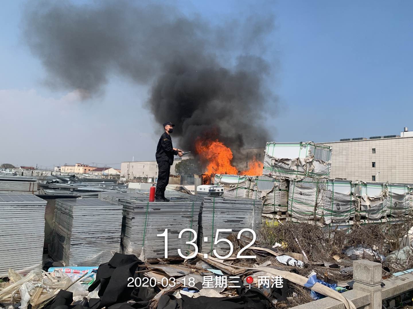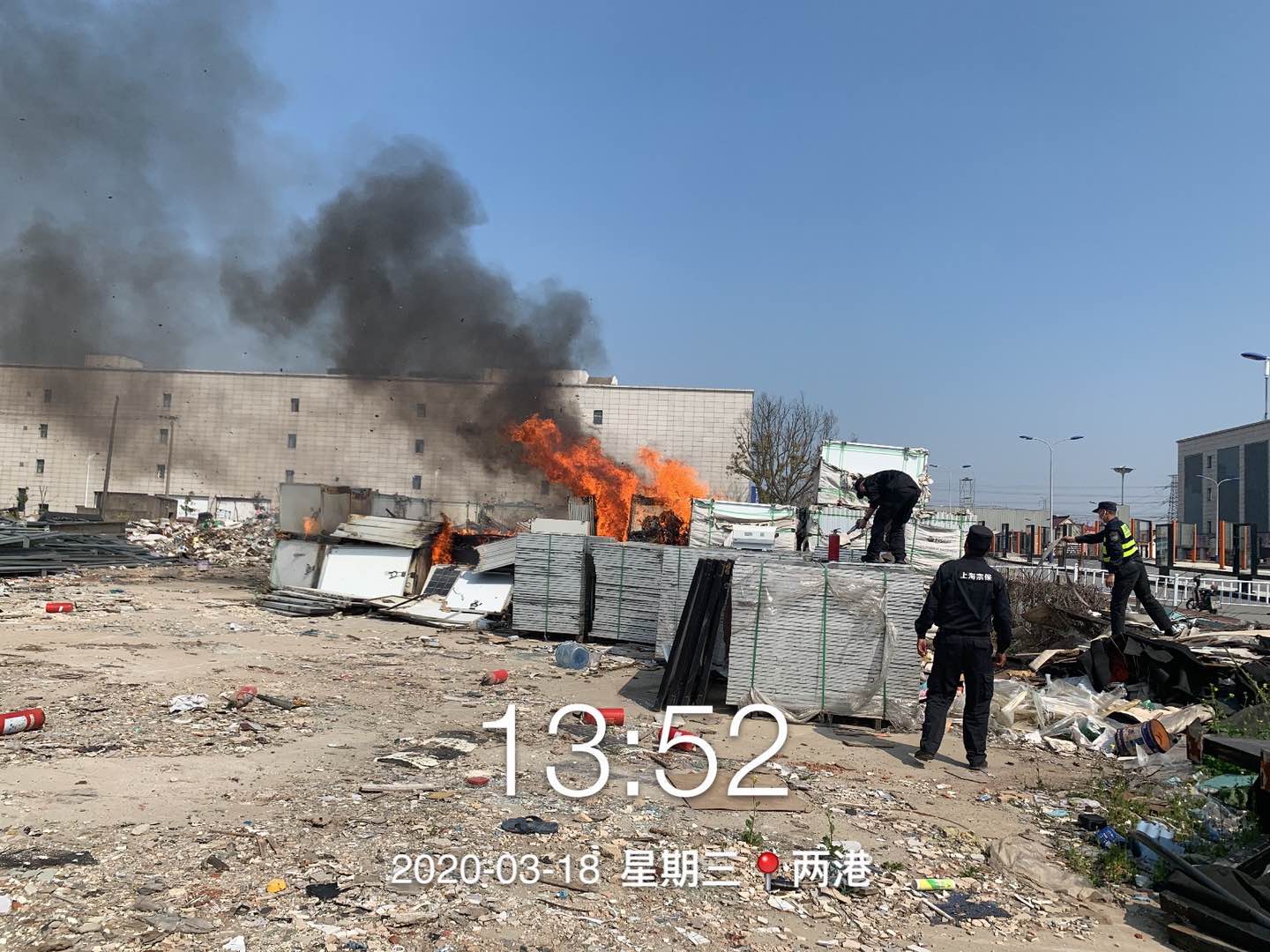 2020年3月18 日13:50,南六公路699號北側閑置空地發(fā)生了一起由廢棄物自燃引起的火災。宗保公司駐兩港裝飾城隊員巡邏中發(fā)現火情,立即報告保安部,并急赴現場(chǎng)進(jìn)行滅火,同時(shí)撥打“119”火警電話(huà)報警。