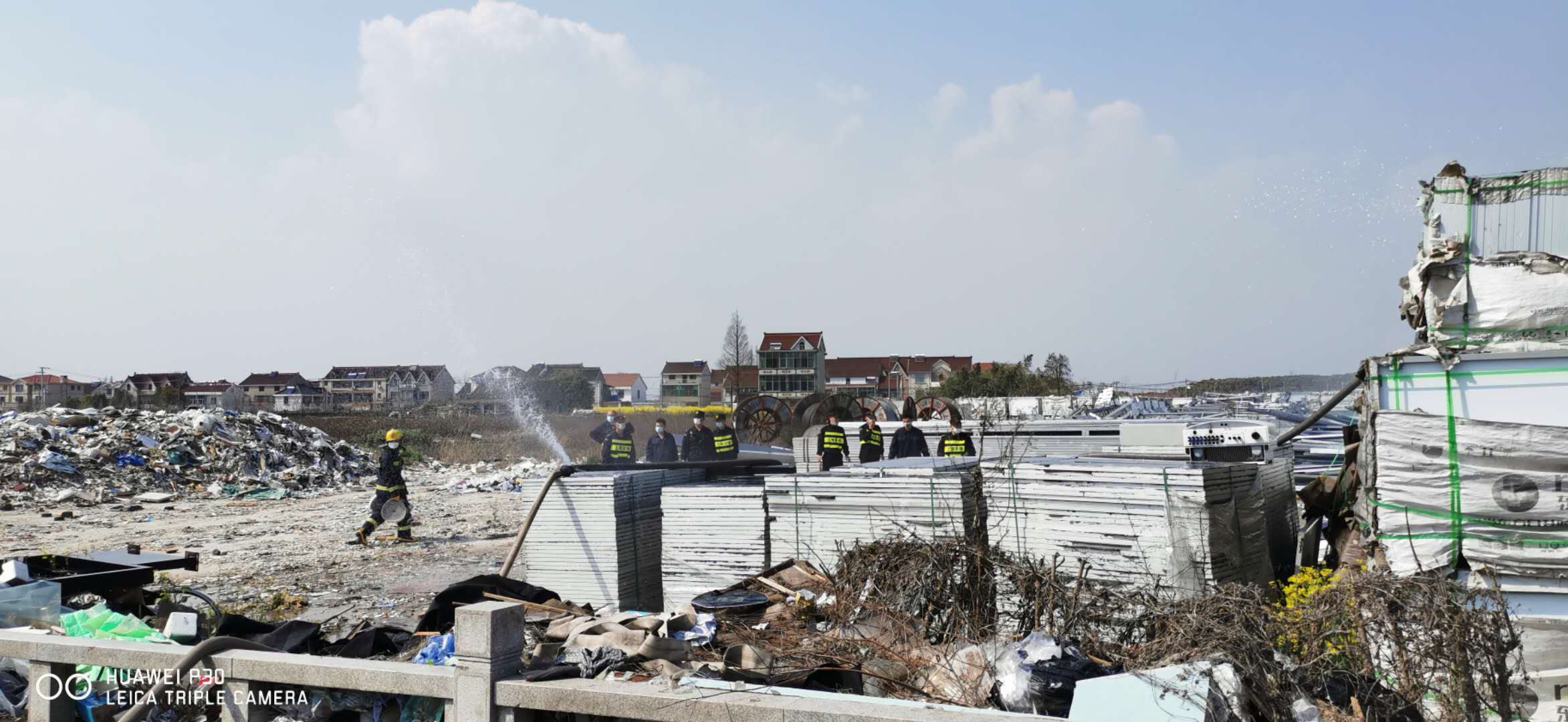 宗保隊員配合趕到現場(chǎng)的消防員全力展開(kāi)滅火,火勢得到了有效控制,大火于14:45被撲滅。隨后,隊員們對現場(chǎng)進(jìn)行全面清理,徹底排除堆場(chǎng)內復燃的隱患。