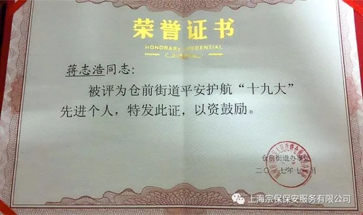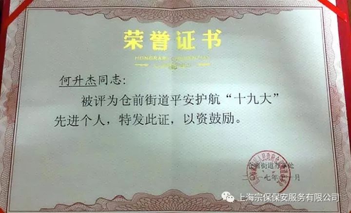 杭州倉前輔警項目隊員蔣志浩、張小龍、何升杰三人在此次“平安護航十九大”安?;顒?dòng)中被倉前街道評為“先進(jìn)個(gè)人”,獲得榮譽(yù)證書(shū)及物質(zhì)獎勵。